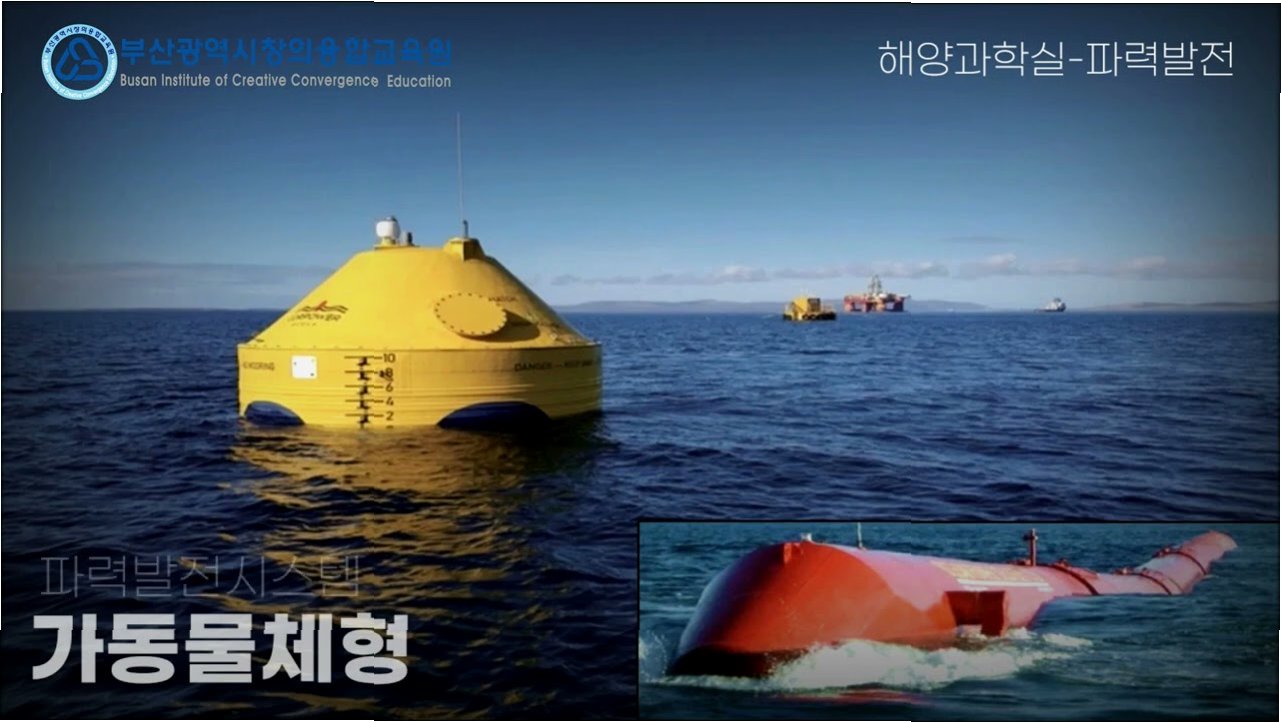 A.파도의 힘으로 진동수주실 내 물의 수위가 변동하면서 발생하는 공기 흐름이 터빈을 돌려 전기를 생산합니다.