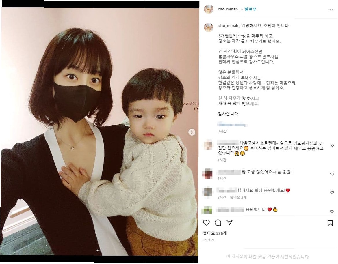 시간이 흐르면서 상처는 희미해지고 아픔은 잊혀지겠지만, 조민아와 강호 군은 힘겨운 과정을 함께 이겨내며 더욱 유연하고 견고해질 것입니다. 조민아는 아이와 함께 세상을 배우고 성장하며, 서로에게 힘이 되어주는 관계를 만들어가고 있습니다. 이러한 과정 속에서 조민아는 긍정적인 마음을 유지하며, 아들을 향한 변함없는 사랑을 보여주고 있습니다.