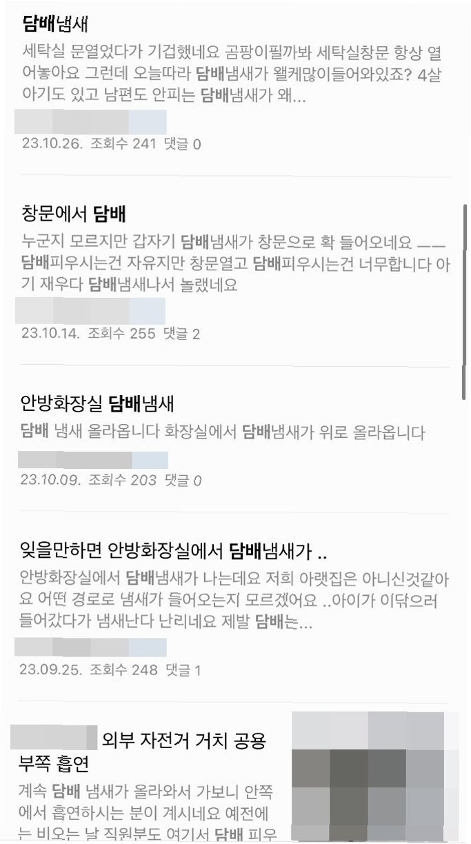 흥미로운 점은 흡연 관련 민원이 급증하고 있다는 것입니다. 전체 민원의 19%를 차지하며, 지난해 4%에서 무려 15%포인트 증가했습니다. 대부분의 민원은 실내 흡연으로 인한 냄새와 연기 피해를 호소하고 있으며, 공동 공간에서의 간접흡연과 담배꽁초 투기 또한 큰 문제로 대두되고 있습니다. 이는 입주민들에게 건강 문제와 직결되기 때문에 더욱 심각하게 받아들여져야 합니다.