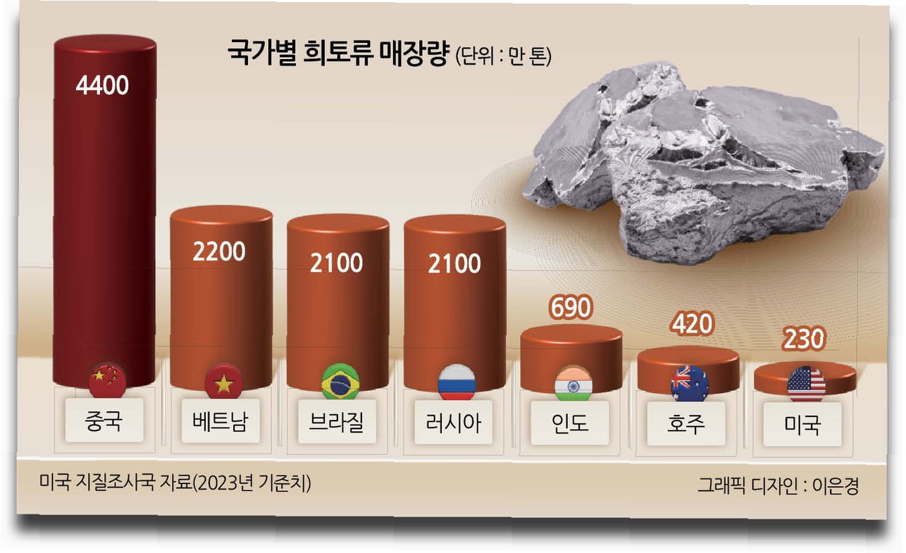 A.희토류는 반도체, 전기차, 스마트폰 등 현대 기술의 핵심 부품 제조에 필수적인 자원입니다. 중국은 세계 희토류 생산의 상당 부분을 차지하고 있어, 공급망에 큰 영향력을 행사할 수 있습니다.