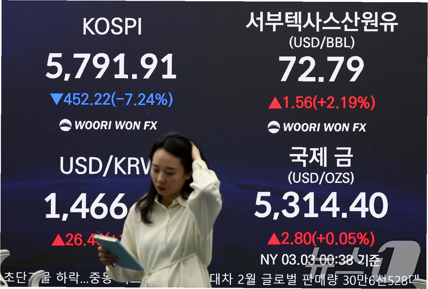 중동 지역의 긴장 고조와 미국·이란 간의 군사적 충돌 여파로 코스피가 급락하며 '검은 화요일'을 맞았습니다. 이날 코스피는 전 거래일 대비 452.22포인트(7.24%) 하락한 5791.91에 장을 마감하며 일일 기준 역대 최대 낙폭을 기록했습니다. 이는 지난달 처음으로 6000선을 돌파한 지 불과 3거래일 만에 5800선마저 내준 충격적인 결과입니다외국인의 거센 매도세가 지수 하락을 주도했으며, 개인 투자자들의 매수세도 이를 막기에는 역부족이었습니다.