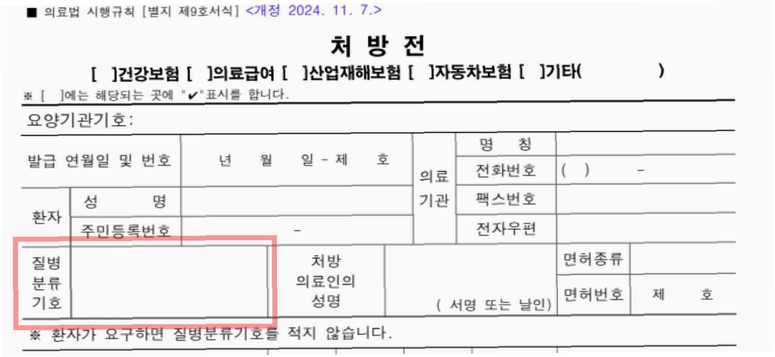 진단서 발급 문제뿐만 아니라, 처방전에 질병코드를 누락하는 경우도 환자들의 불편을 야기합니다. 의료법상 의사·치과의사는 환자가 요구하는 경우를 제외하고 처방전에 질병분류기호(질병코드)를 기재해야 하지만, 이를 지키지 않는 의료기관이 많습니다. 질병코드가 기재된 처방전은 실손 보험금 청구 시 무료로 활용될 수 있음에도 불구하고, 의료기관의 미비한 조치로 인해 환자들이 추가적인 서류 발급 비용을 부담하게 되는 상황입니다.