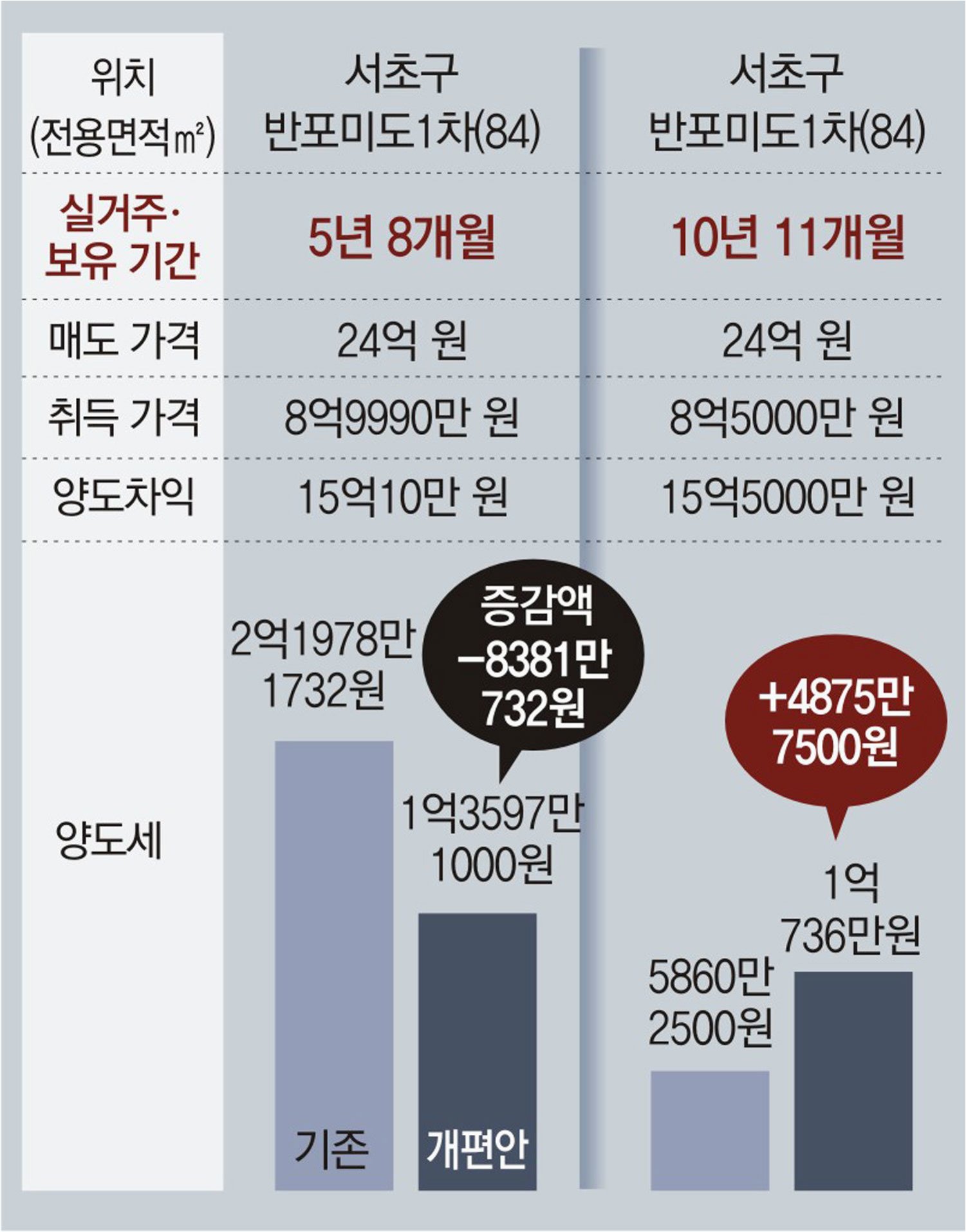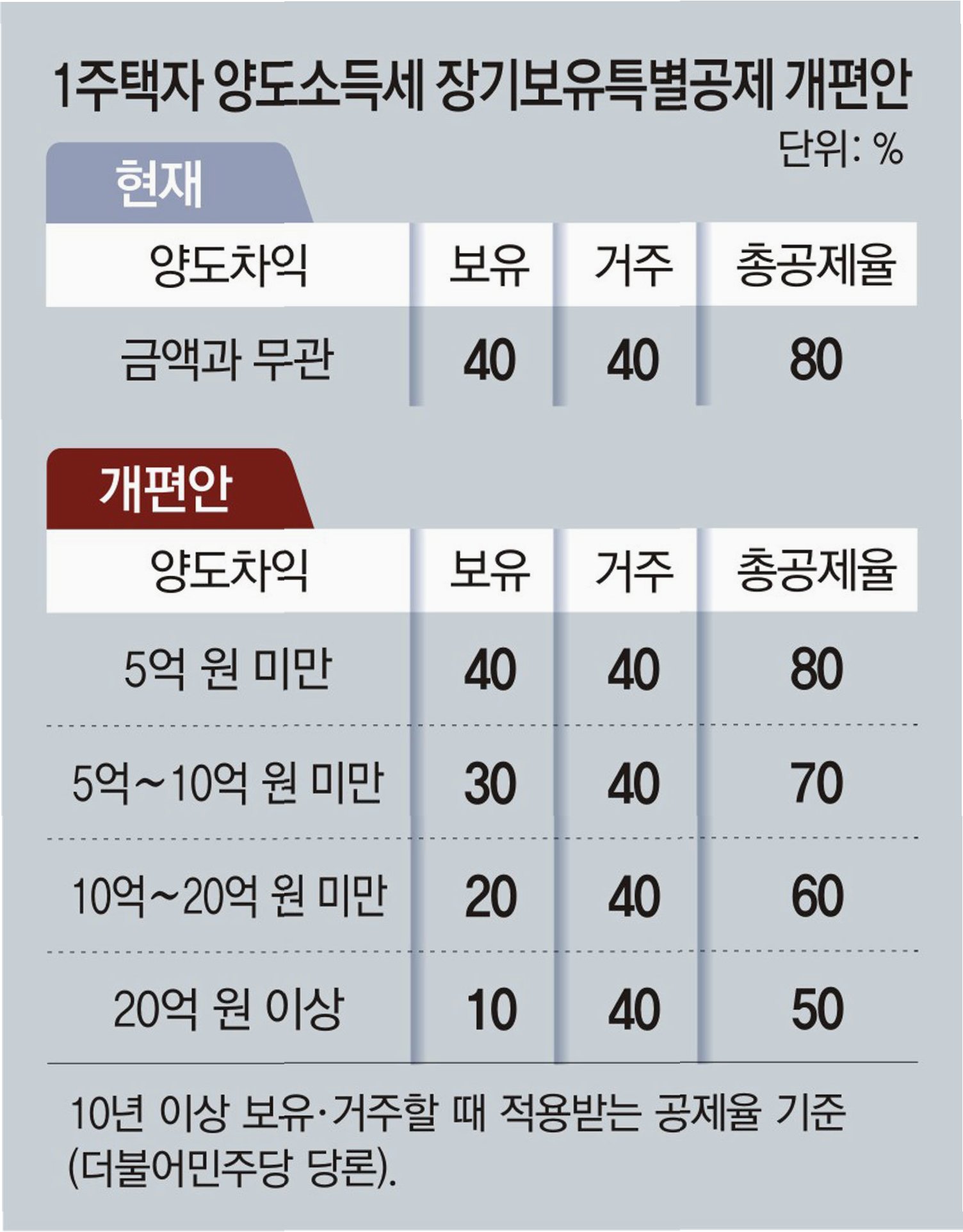 20억 차익, 1주택자는 8천만원, 2주택자는 6억원?