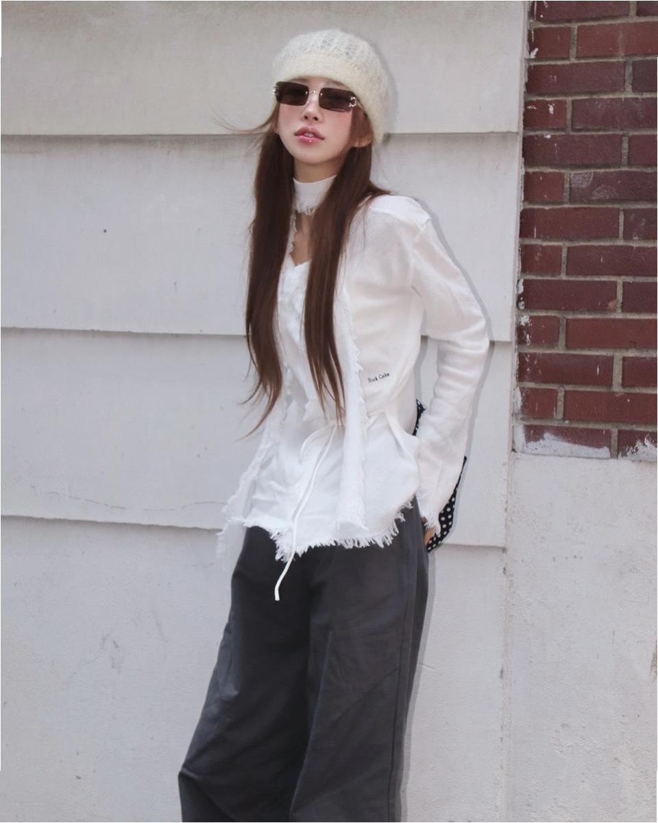 최준희의 스타일은 타이트하게 떨어지는 셔츠의 실루엣과 허벅지 라인을 드러낸 미니 하의, 그리고 무심하게 툭 떨어지는 발목 워커 부츠의 조합으로 구성되어 있습니다. 이러한 조합은 2000년대 하이틴 영화 속 주인공을 떠올리게 하며, 그녀의 독특한 매력을 더욱 돋보이게 합니다.