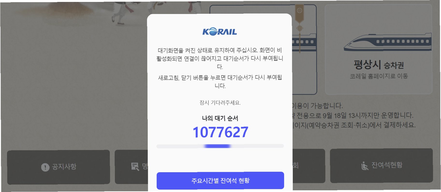오전 8시경에는 대기번호가 100만 번을 넘어서면서, 예매를 시도하는 것조차 쉽지 않은 상황이 연출되었습니다. 많은 이용자들이 몇 시간 동안 대기해야 하는 상황에 놓였고, 예매에 실패하는 사례가 속출했습니다. 시스템 과부하로 인해 예매창이 제대로 열리지 않거나, 접속이 끊기는 등의 기술적인 문제도 발생했습니다. 이러한 상황은 추석 기차표 예매의 경쟁률이 얼마나 치열한지를 보여주는 단적인 예시입니다. 예매를 시도했던 김씨는 '클릭을 해도 화면이 움직이지 않고 정지돼 있어서 일단 예매를 포기한 상태'라고 말했습니다.
