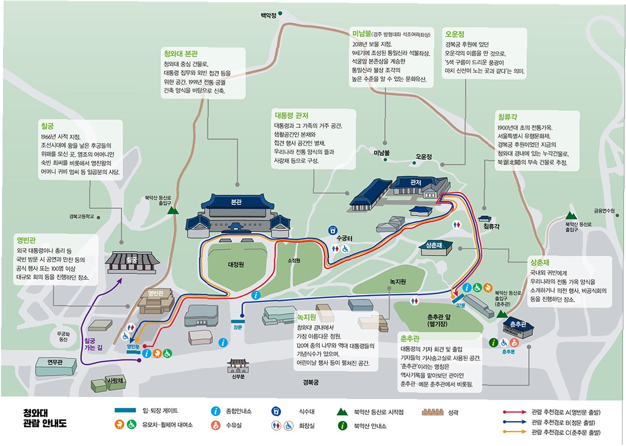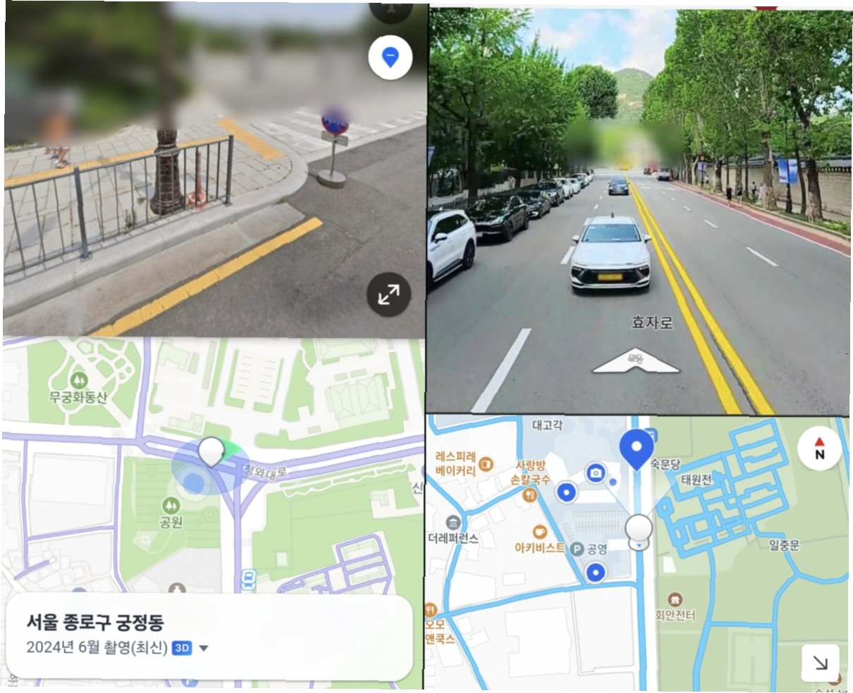 A.구글 지도와 애플 지도의 위성 지도 및 스트리트뷰 기능을 통해 청와대 건물 위치, 내부 모습, 그리고 윤석열 정부 당시 촬영된 사진들이 노출되었습니다.