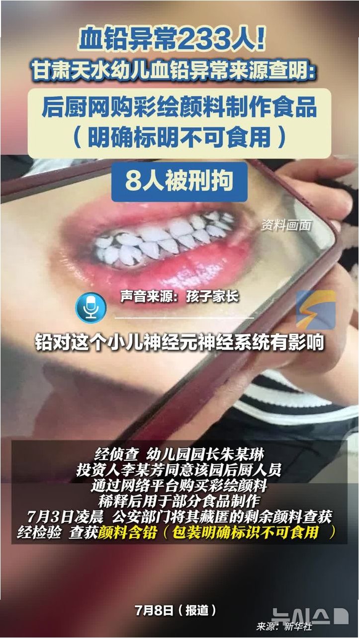 중국 간쑤성 톈수이시의 한 유치원에서 발생한 집단 납 중독 사건은 전 세계를 충격에 빠뜨렸습니다. 200명이 넘는 유치원생들이 납 중독 증세를 보이며, 아이들의 건강에 심각한 위협을 가하고 있습니다. 아이들의 치아 뿌리가 시커멓게 변하고, 흰머리가 나는 등 납 중독을 의심케 하는 끔찍한 증상들이 나타났습니다. 이 사건은 단순히 한 지역의 문제를 넘어, 어린이 건강과 안전에 대한 경각심을 높이는 계기가 되고 있습니다. 아이들의 건강을 최우선으로 생각해야 하는 유치원에서 이러한 일이 발생했다는 사실은 더욱 안타까움을 자아냅니다.