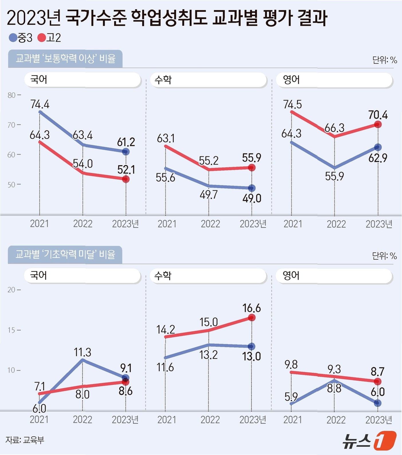학력 저하의 그림자: 중고등학생 학력 수준, 5년간의 변화