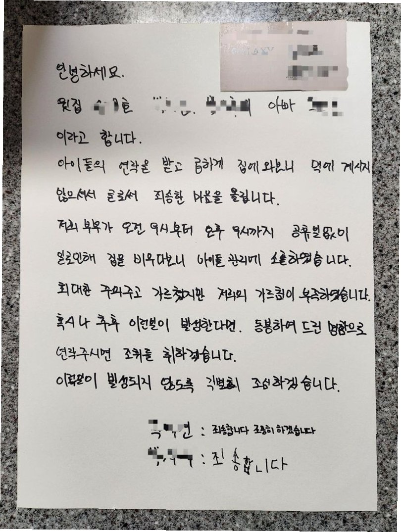 아이들과 함께 쓴 사과 편지