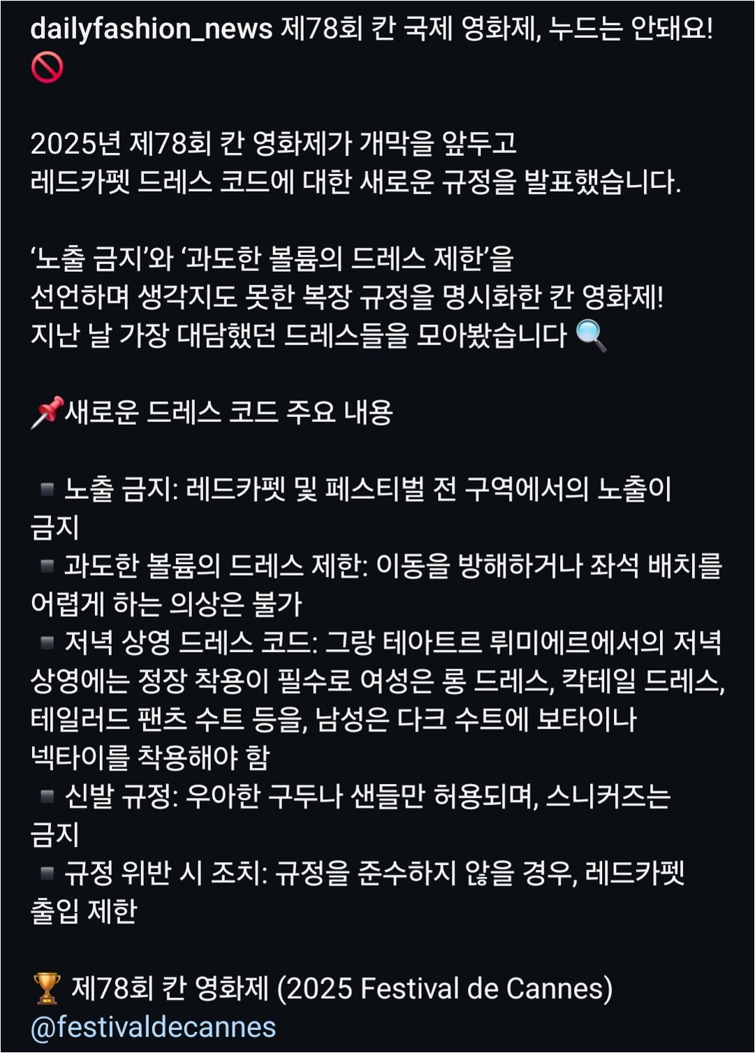 칸 영화제의 복장 규정과 그 의의