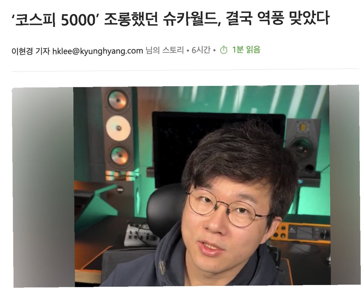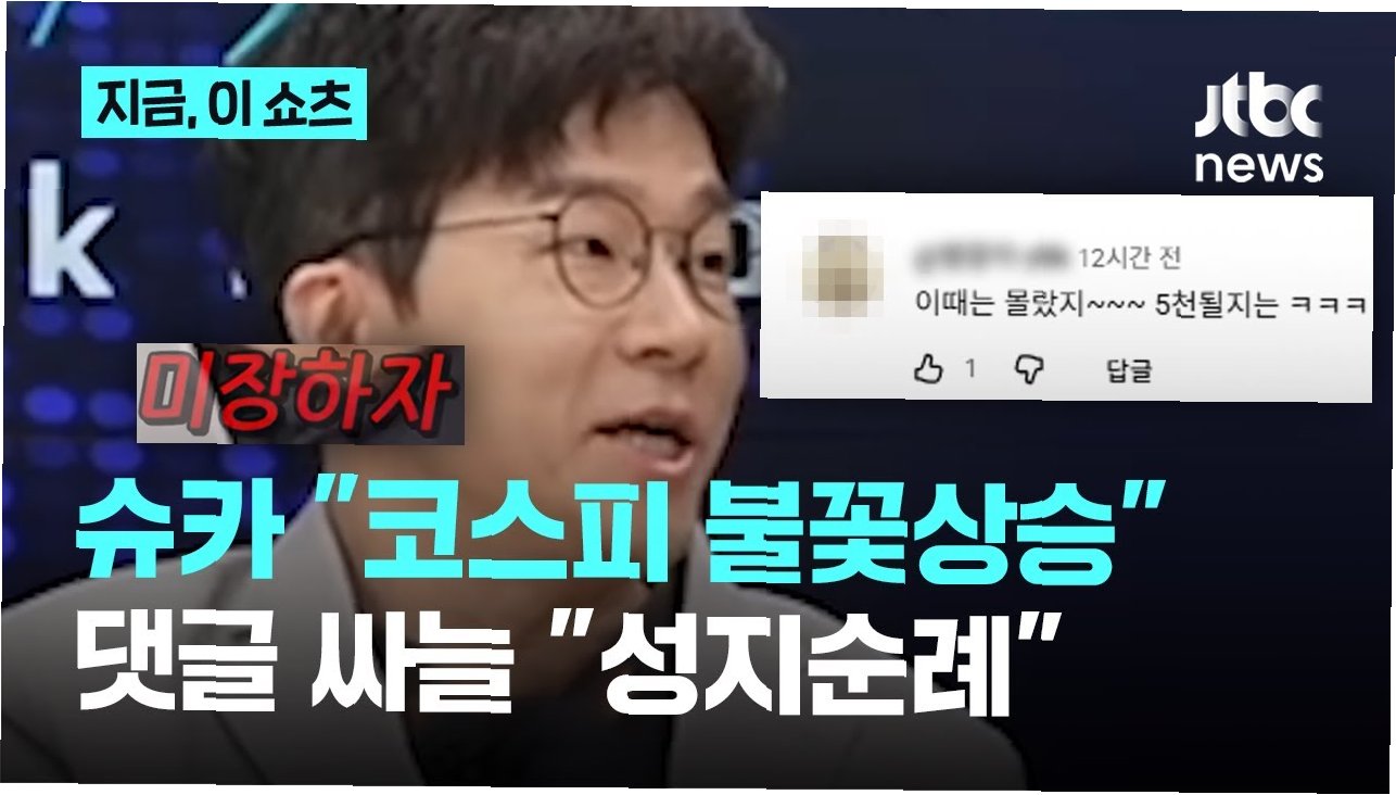 경제 유튜버 슈카월드가 과거 이재명 대통령의 '코스피 5000' 공약을 비꼬았던 발언이 코스피 지수 5200선 돌파 이후 재조명되며 네티즌들의 비판을 받고 있습니다. 당시 비현실적이라던 공약이 현실이 되면서, 슈카월드의 발언은 '철면피'라는 비난과 함께 역풍을 맞고 있습니다.