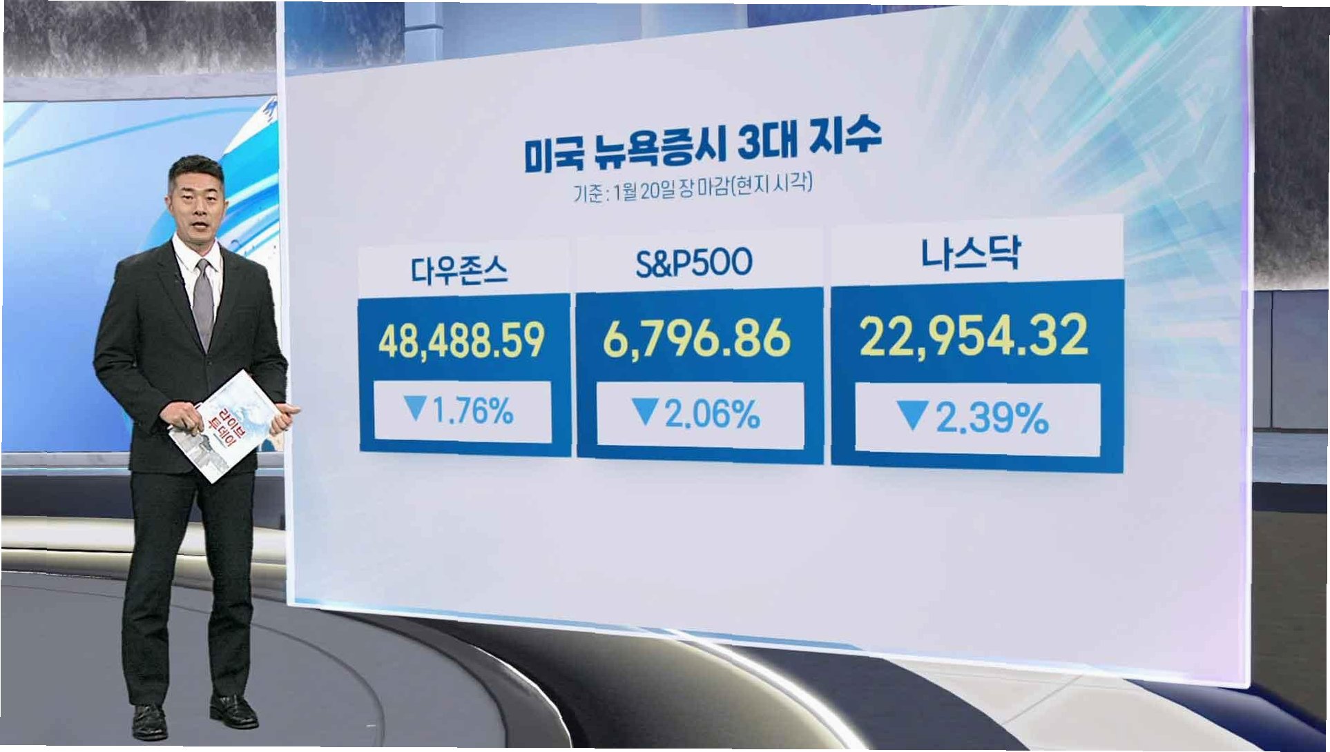 도널드 트럼프 전 미국 대통령의 유럽을 향한 ‘그린란드 관세’ 위협이 뉴욕 증시에 그림자를 드리웠습니다. 20일(현지시간) 뉴욕 증권 거래소(NYSE)에서 다우존스 30 산업평균지수는 870.74포인트(1.76%) 하락하며 48,488.59에 거래를 마쳤습니다. 스탠더드앤드푸어스(S&P) 500지수 역시 143.15포인트(2.06%) 급락하며 6,796.86을 기록했고, 나스닥 종합지수는 561.07포인트(2.39%)나 하락한 22,954.32로 장을 마감했습니다. 투자자들은 트럼프 전 대통령의 관세 부과 가능성에 촉각을 곤두세우며, 시장의 불안감을 키웠습니다. 이러한 하락세는 단순히 숫자 이상의 의미를 지닙니다. 이는 투자 심리가 얼마나 취약한지를 보여주는 지표이며, 글로벌 경제에 대한 불확실성을 증폭시키는 요인으로 작용합니다.