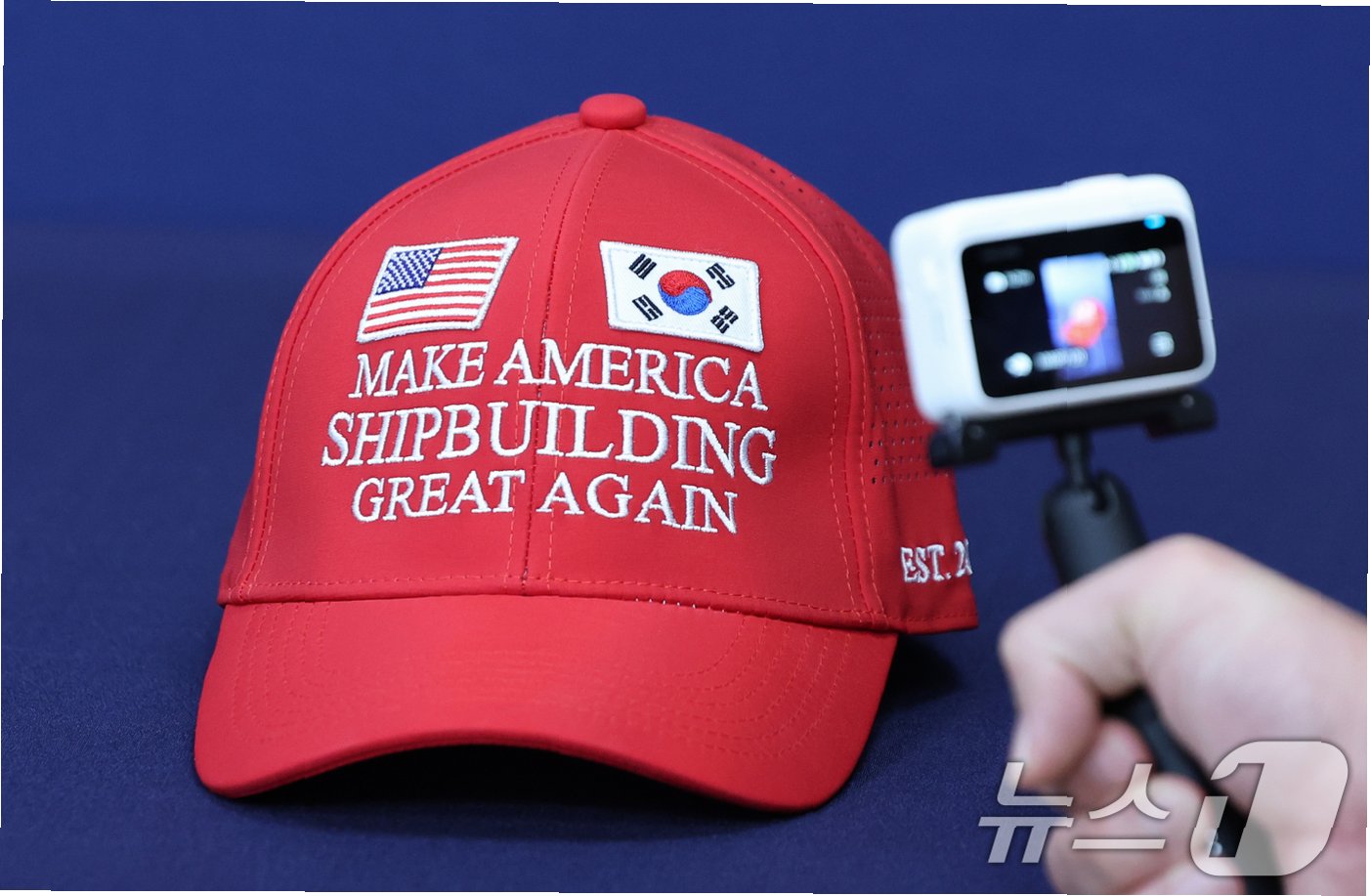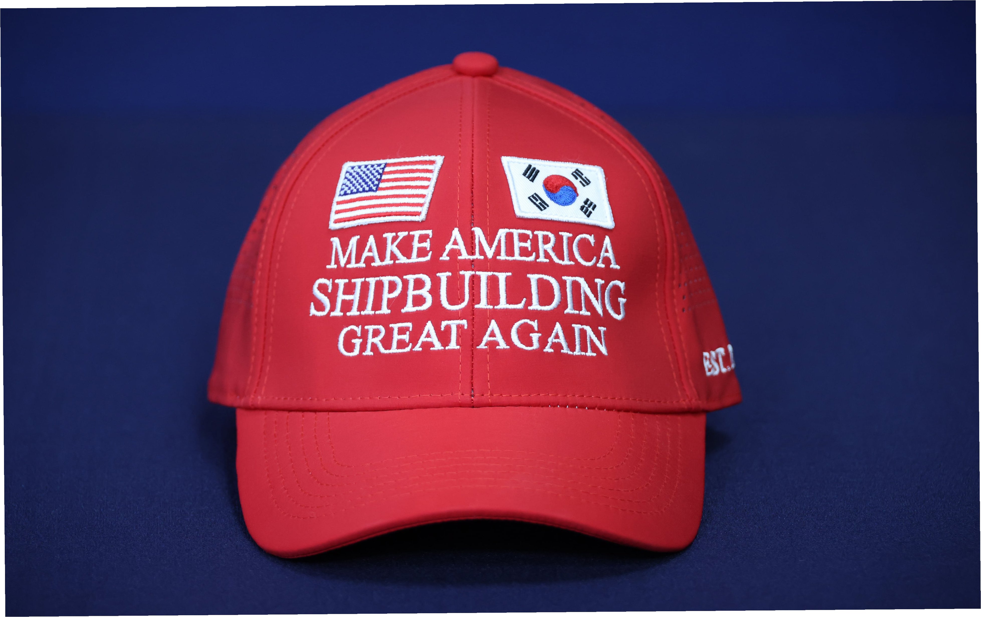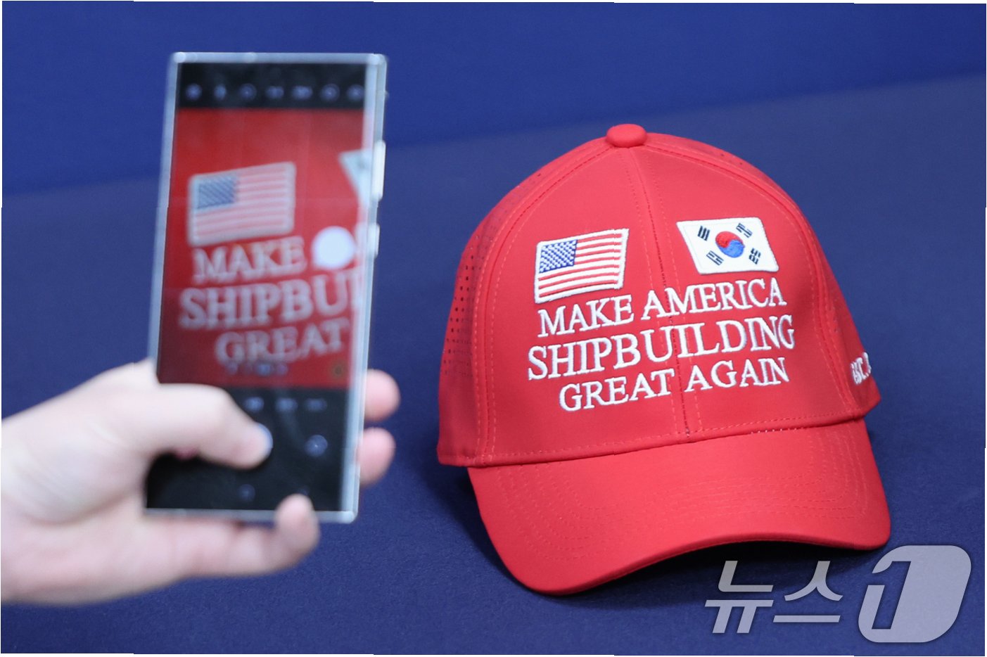 A.트럼프 대통령의 'MAGA' 구호에 착안하여 '미국 조선업을 다시 위대하게'라는 구호를 담은 모자입니다. 한미 관세 협상에서 미국 측에 어필하기 위해 제작되었습니다.