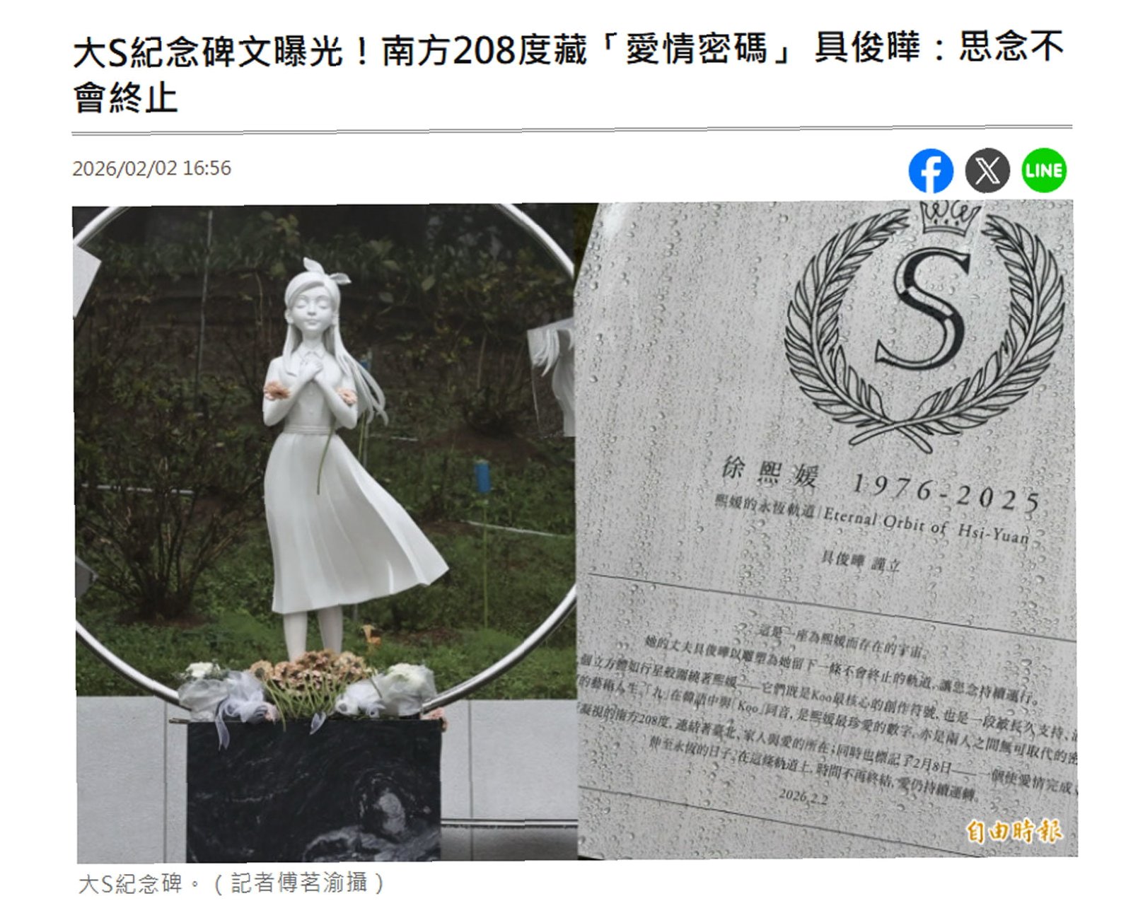 서희원 님은 지난해 2월 2일, 일본 여행 중 독감으로 인한 폐렴으로 갑작스럽게 세상을 떠났습니다. 일본에서 화장 절차를 마친 유해는 사흘 뒤 대만으로 옮겨져 지난해 3월 금보산 장미원에 안치되었습니다. 이번 추모 동상 공개는 그녀를 기억하고 추모하는 많은 이들에게 깊은 감동과 슬픔을 안겨주었습니다. 구준엽 님의 정성이 담긴 동상은 앞으로도 영원히 그녀를 기억하는 상징이 될 것입니다.