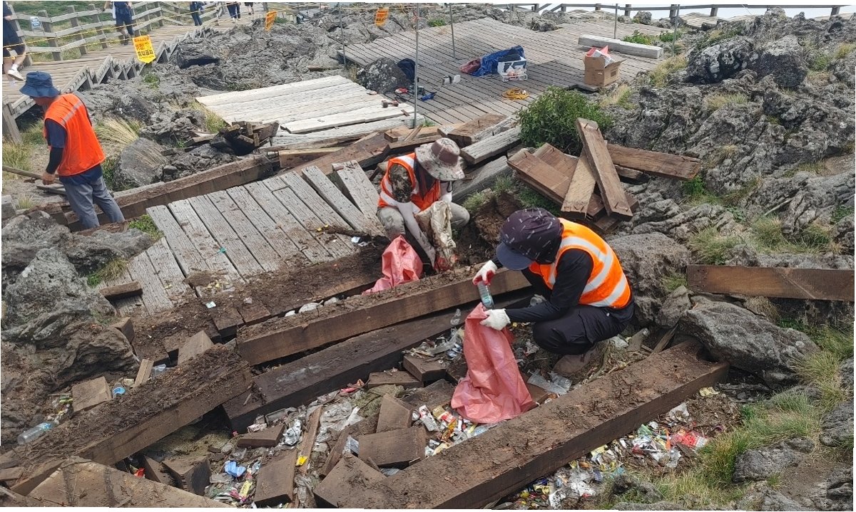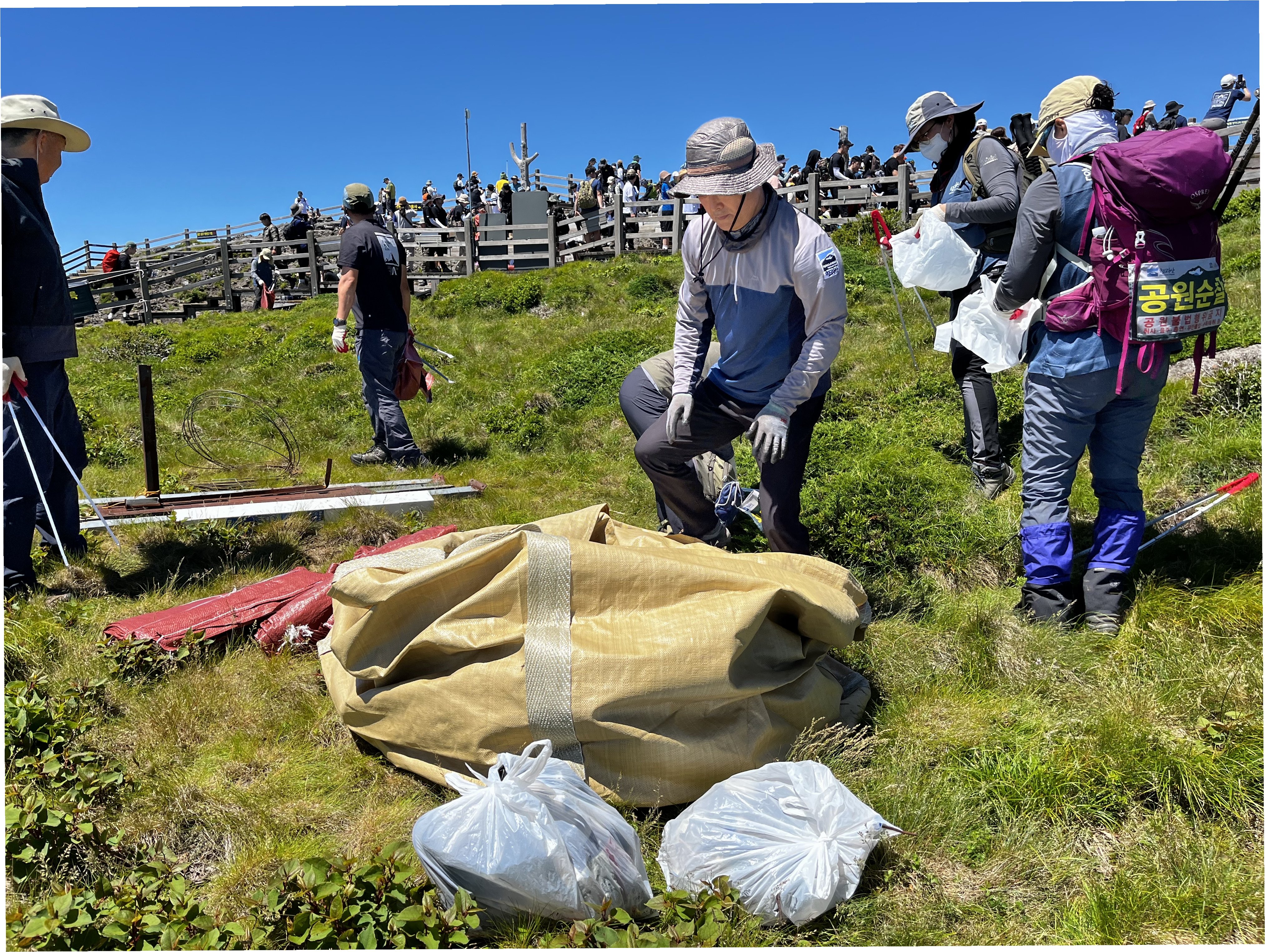 A.데크 정비와 함께 쓰레기 수거 작업을 진행하고 있으며, 지속적인 관리와 노력을 통해 깨끗한 한라산을 만들기 위해 노력하고 있습니다.