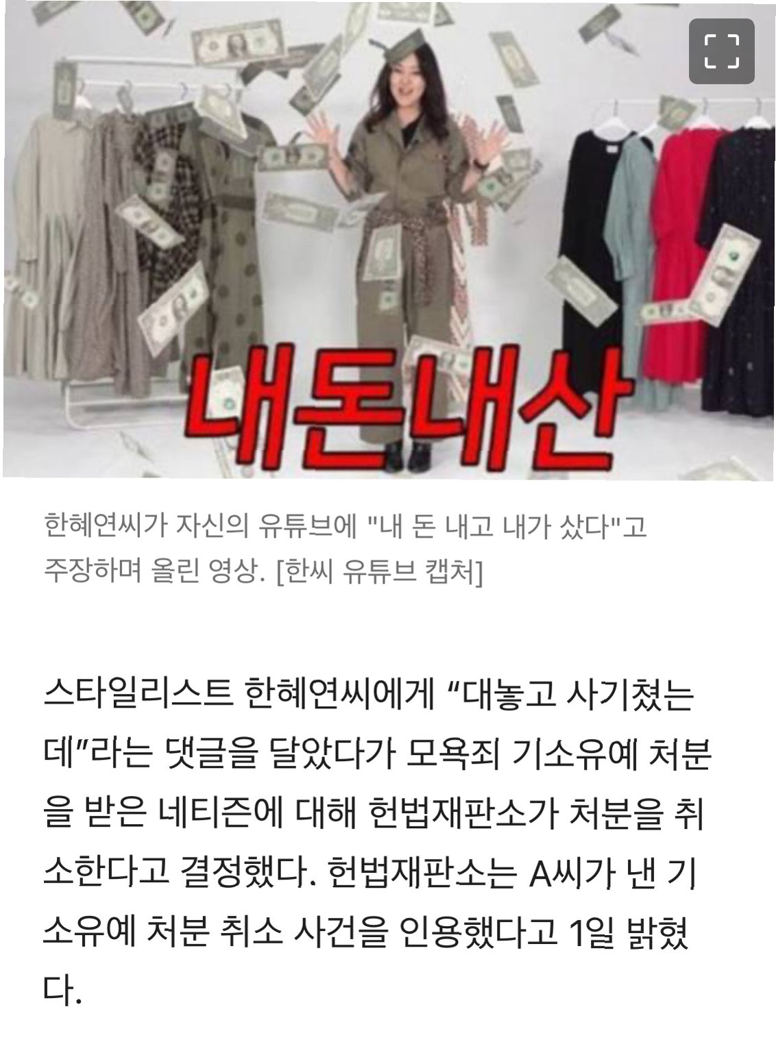 스타일리스트 한혜연씨에 대한 비판 댓글로 인해 모욕죄 기소유예 처분을 받은 네티즌 A씨의 사건이 헌법재판소에 의해 새롭게 조명되었습니다. 헌재는 A씨가 한혜연씨의 유튜브 방송에 대한 댓글을 작성한 것이 '모욕'이 아니라는 결정을 내렸습니다. A씨는 한혜연씨의 뒷광고 논란에 대한 비판적인 의견을 댓글로 남겼고, 이에 대한 처벌이 과도하다는 주장을 하며 헌재에 헌법소원을 제기했습니다. 이러한 결정은 표현의 자유와 비판의 권리가 어떻게 보호받아야 하는지를 다시 한번 생각하게 합니다.
