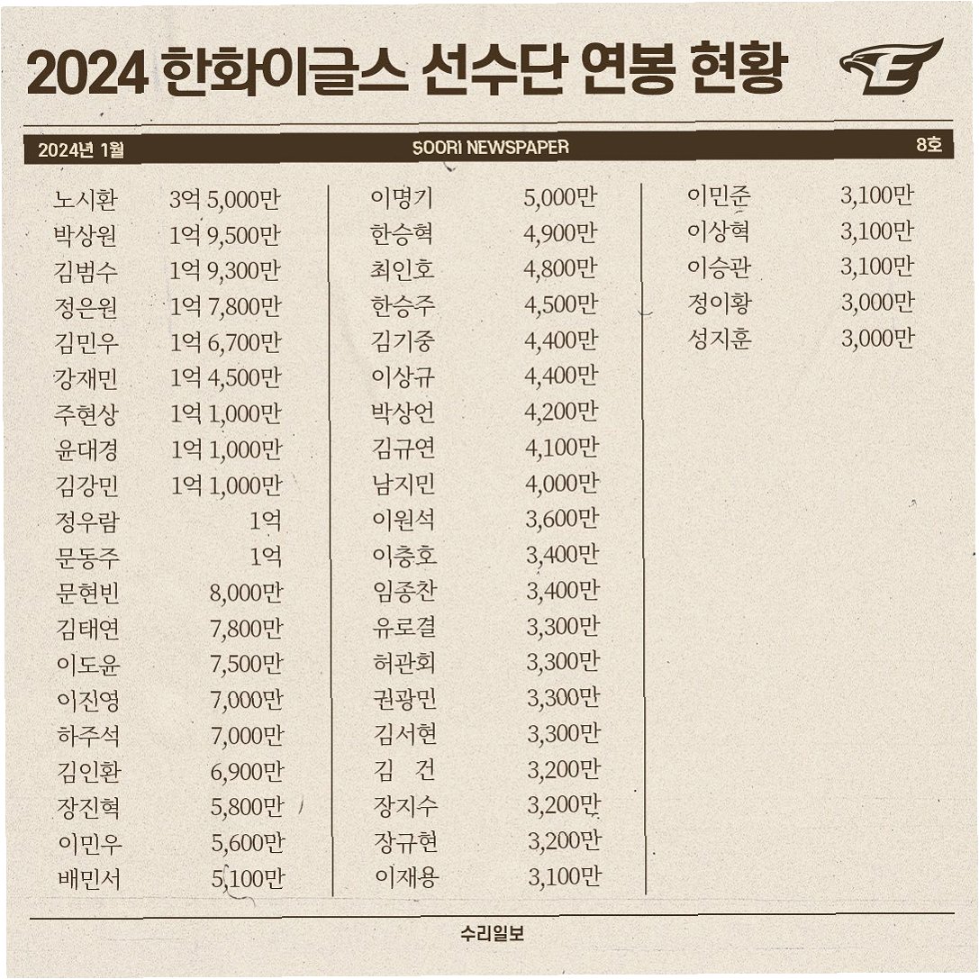 2026년 KBO 리그 스토브리그에서 한화 이글스의 행보가 뜨겁습니다. 팀의 핵심 타자인 노시환 선수에게 연봉 10억 원을 제시하며 야구계에 큰 충격을 안겼습니다. 이는 지난해 연봉 3억 3,000만 원에서 203% 인상된 금액으로, KBO 리그 역사상 8년 차 선수로는 최초의 기록입니다종전 기록 보유자인 강백호 선수의 7억 원을 뛰어넘으며 '토종 거포'에 대한 확실한 대우를 보여주었습니다.