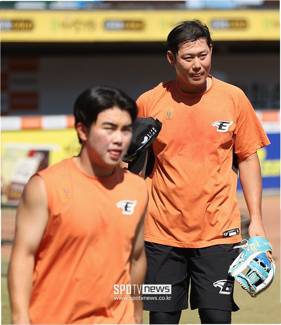 8회초 수비부터는 심우준이 유격수로 들어가고, 하주석이 유격수에서 2루수로 자리를 옮겼다. 9회초 수비 포지션이 대거 바뀌었다. 마운드에는 김서현이 올랐고, 2루수 하주석은 1루수로, 좌익수 문현빈이 2루수로 이동했다.