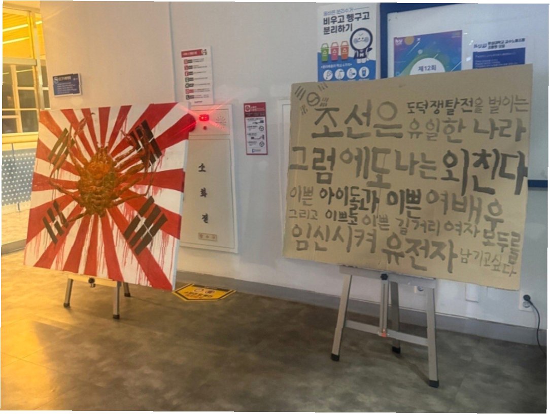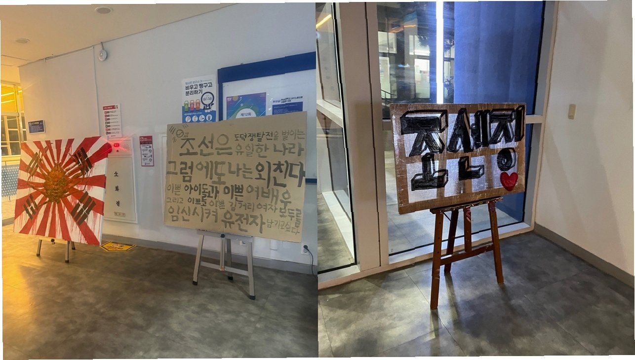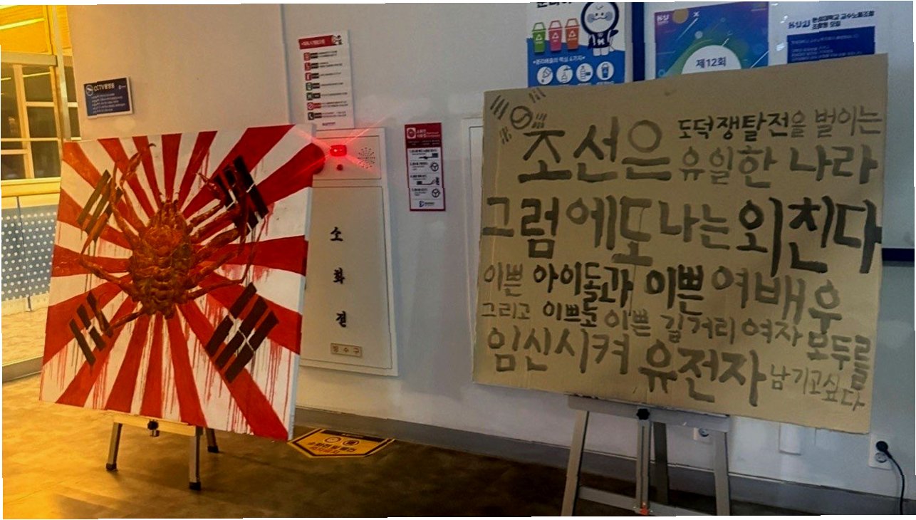 서울의 한 대학교 전시 공간에서 욱일기를 연상케 하는 이미지와 혐오 표현이 담긴 작품이 등장해 논란을 일으키고 있습니다. 전문가들은 이러한 전시가 일본 극우 세력에게 명분을 제공할 수 있는 위험한 행위라고 경고하고 있습니다. 특히, ‘조센징’이라는 표현이 포함된 작품은 우리 사회의 갈등을 더욱 부각시키고 있습니다. 이번 전시는 서울 한성대학교 건물 내에서 설치되었으며, 일본 제국주의의 상징인 욱일기를 태극기와 결합한 형상이 큰 충격을 주고 있습니다.