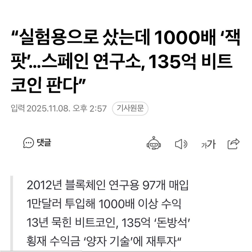 스페인의 한 연구소가 13년 전, 단돈 1300만원에 매입했던 비트코인으로 1000배가 넘는 잭팟을 터뜨렸습니다. 당시 연구 목적으로 구매했던 97개의 비트코인이 현재 135억원 이상의 가치를 가지게 된 것입니다. 이 놀라운 이야기는 가상자산 시장의 뜨거운 관심을 받으며, 투자자들에게 깊은 울림을 주고 있습니다. 비트코인의 가파른 성장세와 예상치 못한 연구소의 횡재는, 마치 한 편의 드라마와 같은 흥미로운 스토리를 선사합니다.