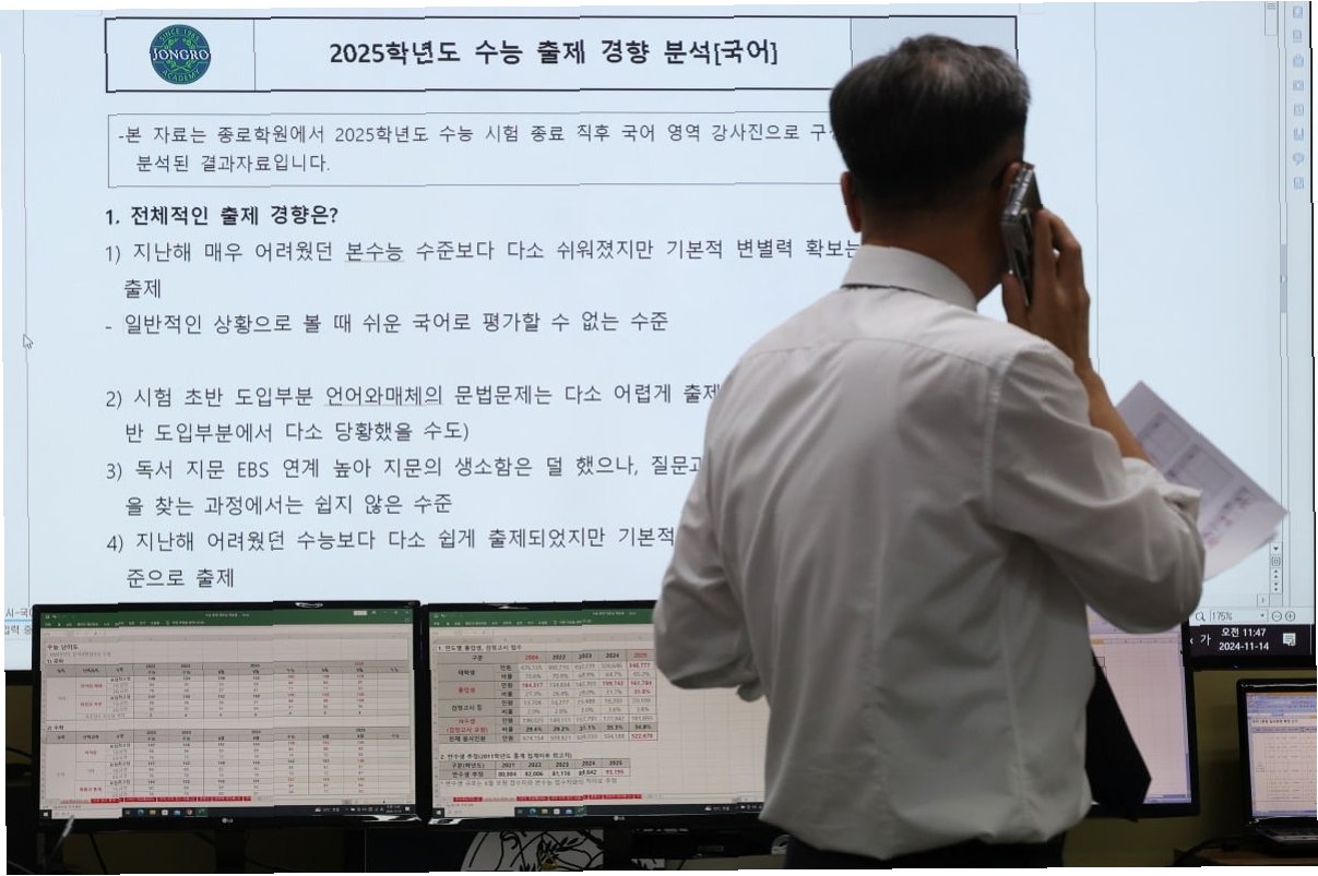 입시업체들은 이번 수능이 국어, 수학, 영어 모두 작년보다 어렵게 출제되었다고 분석했습니다. 특히, 국어와 수학은 9월 모의평가와 유사한 난이도로, 영어는 9월 모의평가보다 다소 어렵게 출제되어 변별력을 높였다는 평가입니다. 전문가들은 킬러 문항 없이도 충분한 변별력을 확보한 시험으로 평가하며, 상위권 학생들의 성적이 어떻게 갈릴지 주목하고 있습니다.