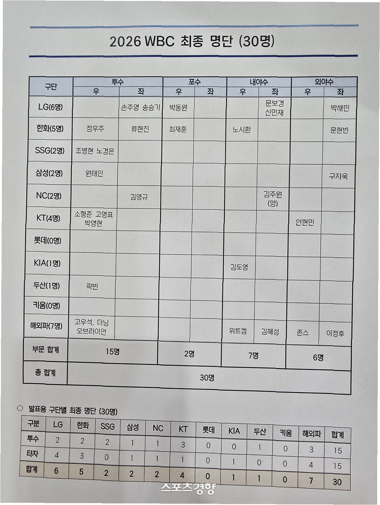2026 WBC 대표팀 최종 명단 발표