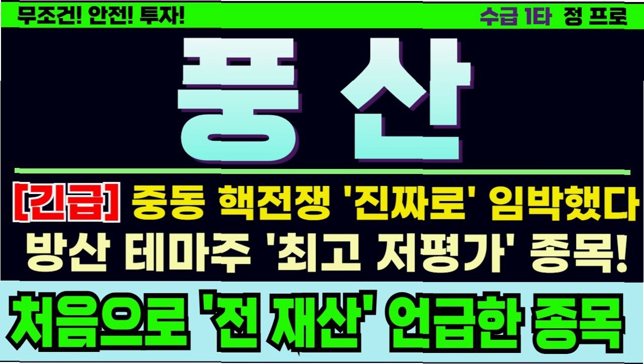 풍산은 중동 정세 불안과 방산 시장의 성장, 그리고 밸류에이션 매력을 바탕으로 투자자들의 주목을 받고 있습니다. 탄약 수요 증가와 실적 개선 기대감을 고려할 때, 풍산은 앞으로도 긍정적인 성장세를 이어갈 것으로 예상됩니다. 투자자들은 풍산의 잠재력을 주시하고, 신중한 투자를 고려해 볼 필요가 있습니다.