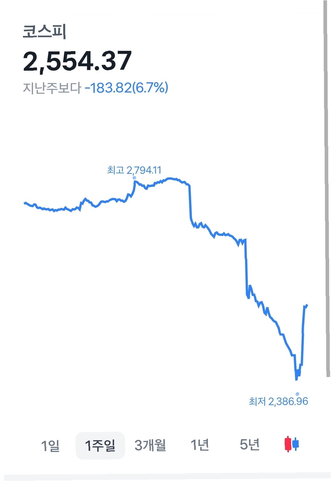전쟁 공포에 코스피 급락, 사이드카 발동