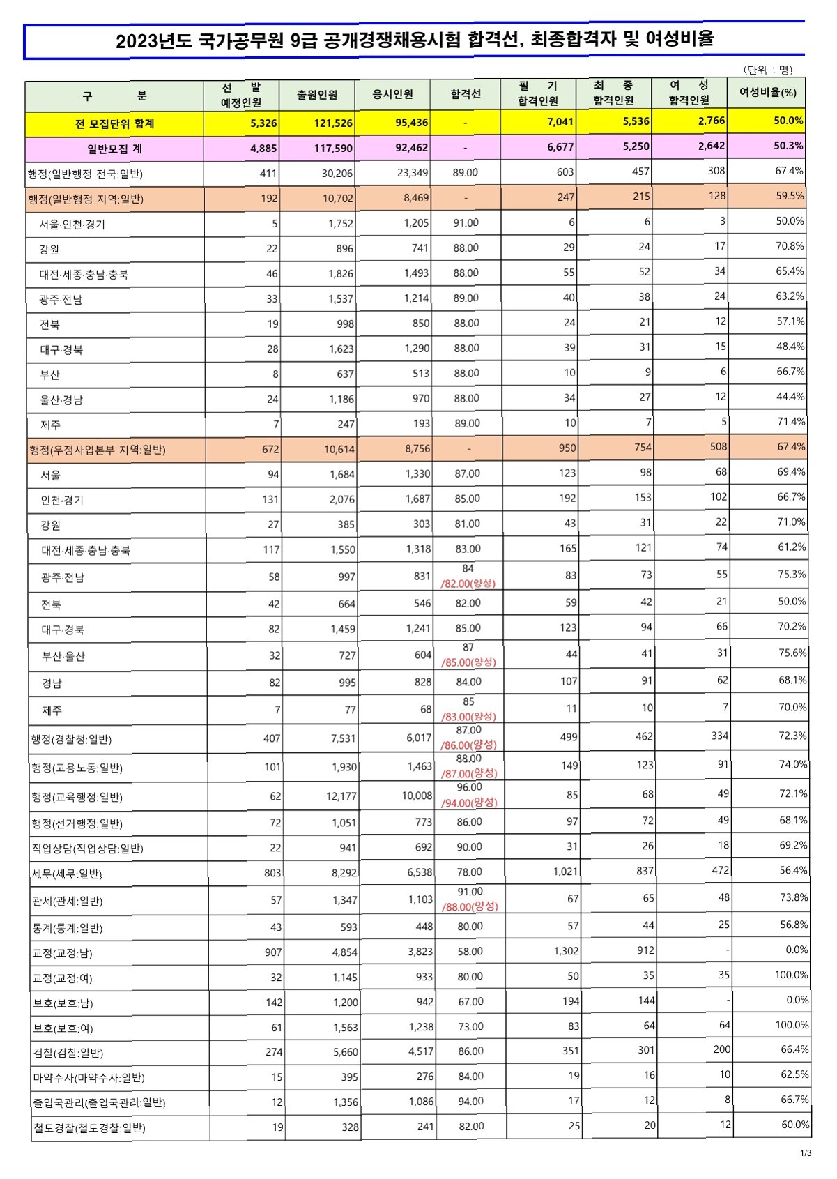 각 직렬별 합격선 분석
