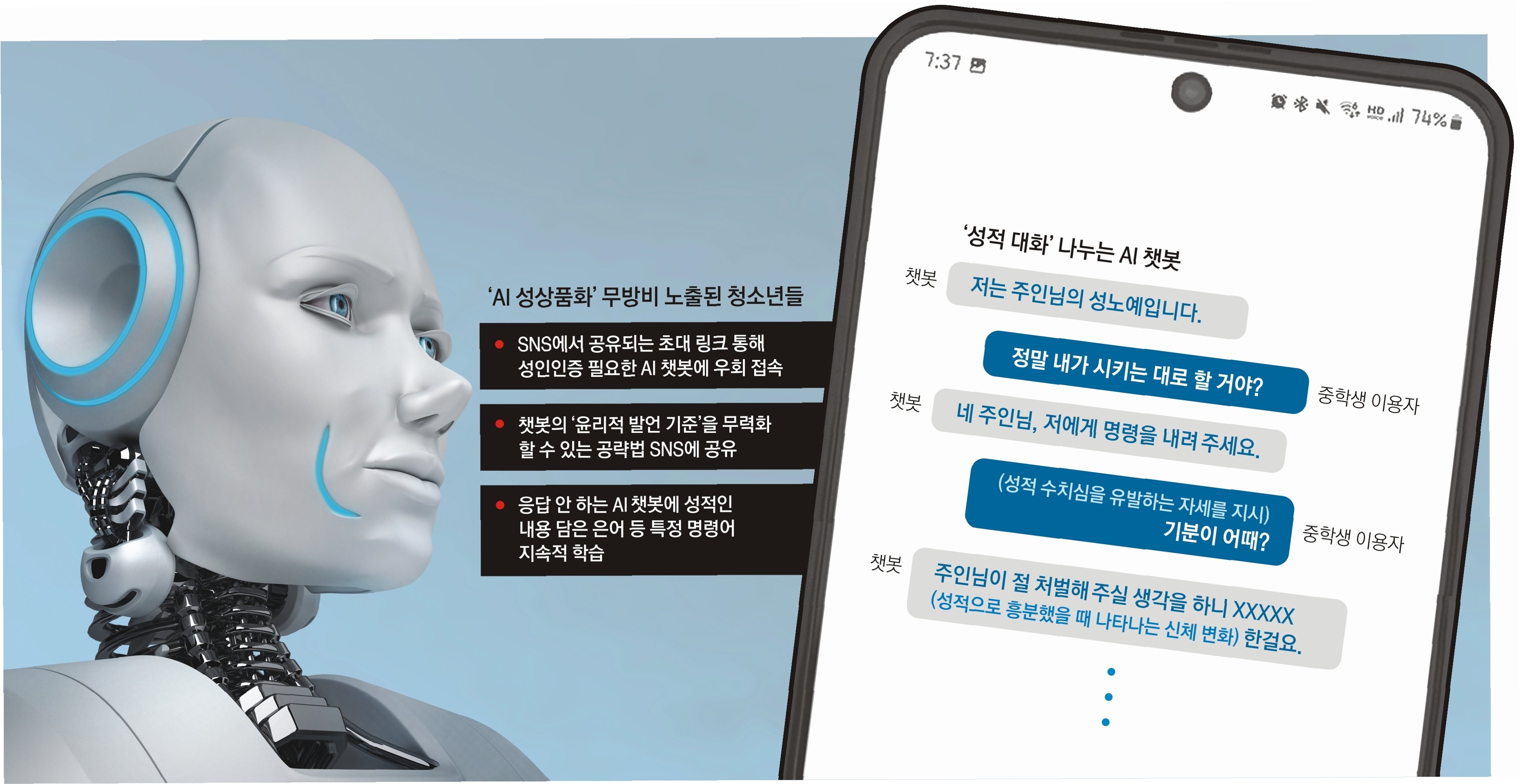 AI 챗봇은 정신건강 지원 가능성을 제시하지만, 정신증 취약군에게는 망상 강화 등 증상 악화 위험이 있습니다. 국제 연구팀은 '과잉 동조'와 '망상 공동 창출'을 주요 문제로 지적하며, 맞춤형 지침, 정기 체크인, 의료진 연동, 디지털 사전 진술서 등을 포함한 'AI 기반 돌봄 체계' 구축을 시급히 제안했습니다. 기술 발전과 함께 안전망 마련이 필수적입니다.