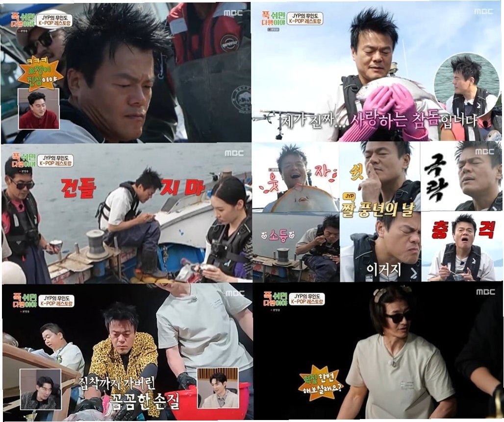 박진영과 일꾼들은 무인도 레스토랑 운영을 위해 이른 아침부터 본격 조업에 돌입했다. 평소에도 해산물을 좋아한다는 그는 설렘을 감추지 못했다. 박진영은 직접 앞장서서 그물을 끌어 올리고 뜰채로 생선을 퍼 올리며 열정적인 면모를 보여줬고, 최애 생선 참돔이 잡히자 "제가 진짜 사랑하는 참돔"이라며 입을 맞췄다. 이와 함께 쉽게 보기 어려운 강담돔, 어마어마한 크기의 방어 등 귀한 생선들이 연달아 올라오자, 박진영은 풍부한 리액션으로 '짤 부자'에 등극했다.