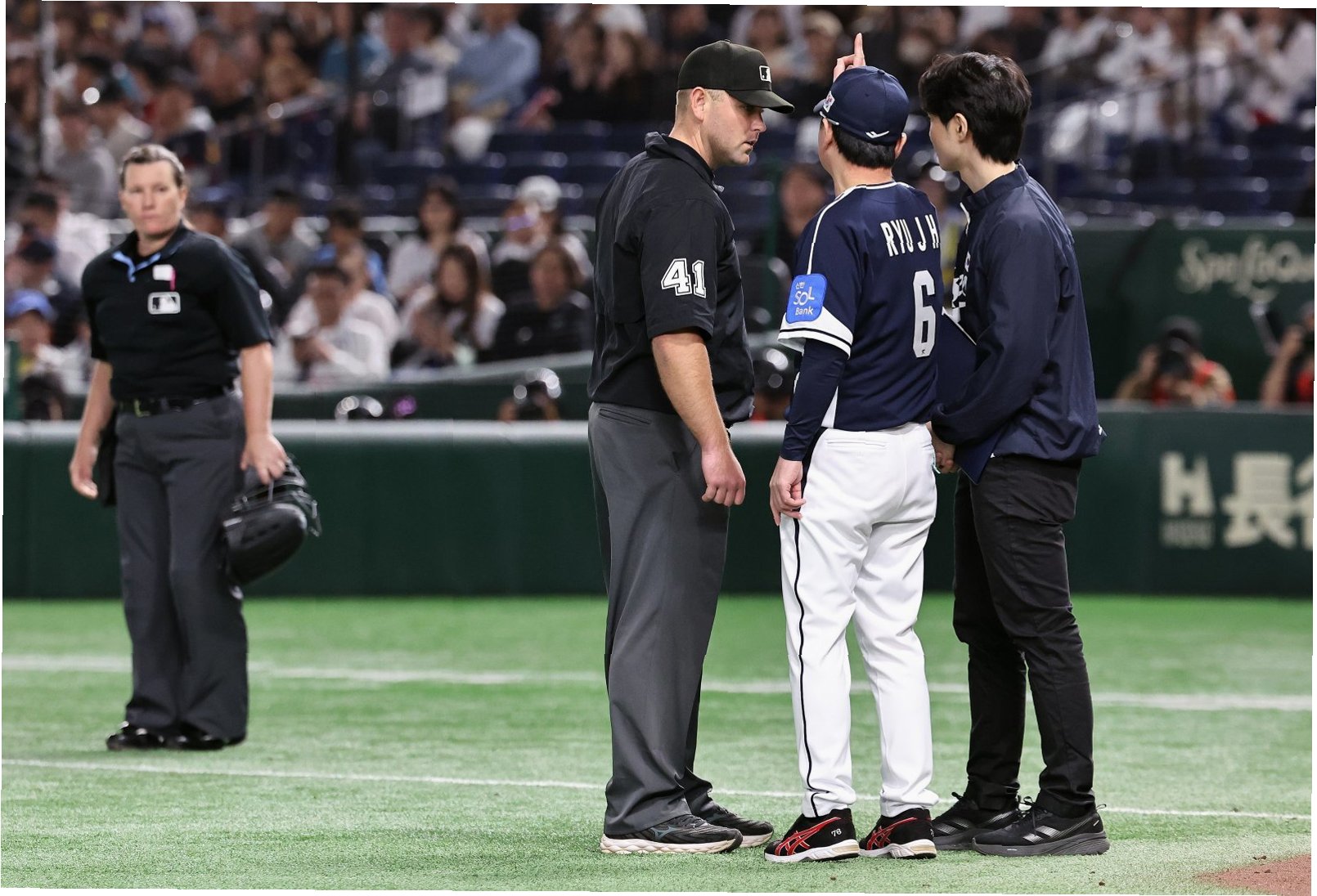 하지만, 기대와는 달리 젠 파월 심판의 판정은 연이어 논란의 중심에 섰습니다. 5회말, 한국 선두 타자 문현빈(한화)의 타구가 투수 강습 후 1루수가 잡았지만, 파월 심판은 아웃을 선언했습니다. 리플레이 결과, 공이 땅에 먼저 튄 뒤 투수 발을 맞은 것으로 확인되었지만, 판정은 번복되지 않았습니다.  KBO 사무국 관계자는 MLB 판독 규정을 적용했다고 설명했지만, 팬들은 아쉬움을 감추지 못했습니다.  이 오심으로 인해 한국의 공격 흐름이 끊겼고, 득점 기회를 놓치게 되었습니다.  경기 후 문현빈 선수는 “오심 하나로 분위기가 넘어간 것 같다. 씁쓸했다”고 말하며, 아쉬움을 표현했습니다.
