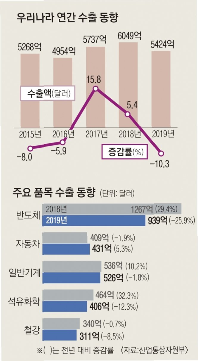 A.관세 정책과 글로벌 경쟁 심화가 수출 시장에 미치는 영향을 보여주며, 한국 경제의 새로운 도전을 의미합니다.