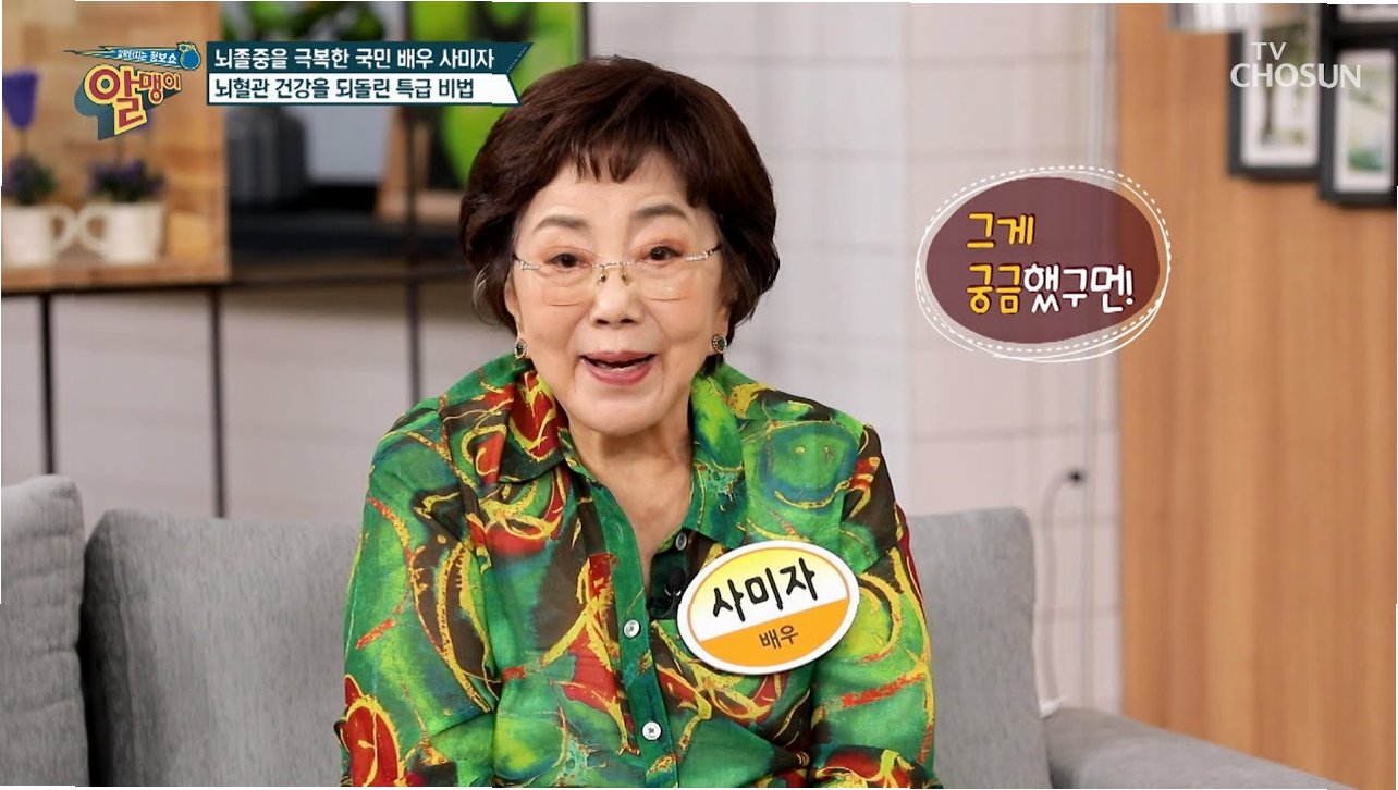 A.사미자 배우는 60대에 심근경색, 70대에 뇌경색을 겪었다고 고백한 바 있습니다.