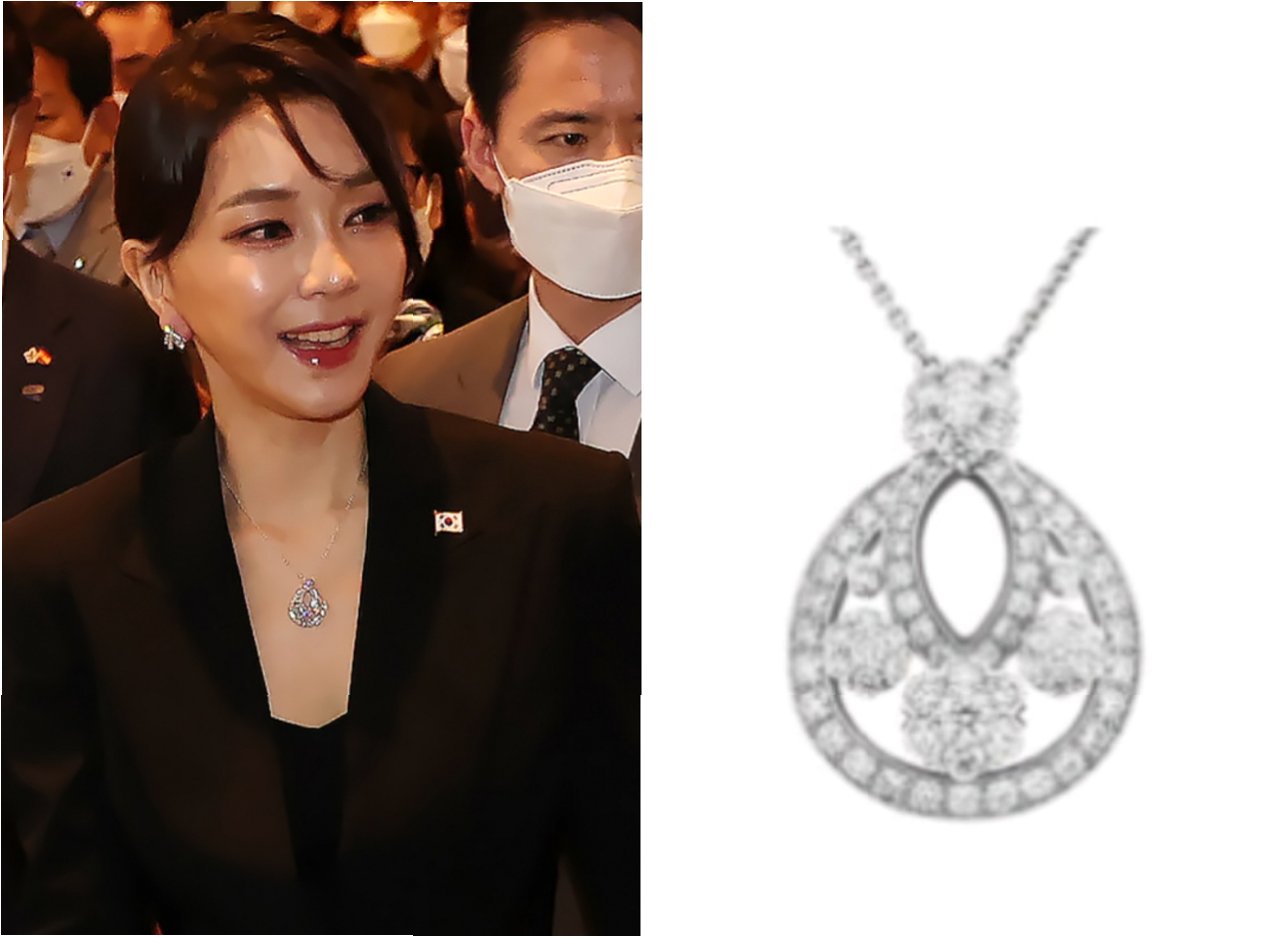 A.김건희 씨가 윤석열 전 대통령의 나토 순방 당시 착용한 수천만 원 상당의 '반 클리프 아펠' 목걸이의 출처와 관련한 의혹입니다.
