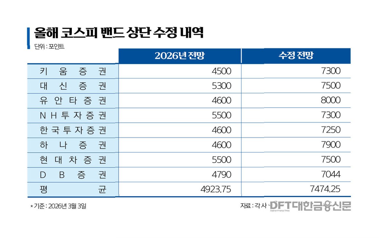 일본 최대 증권사인 노무라증권이 올해 코스피지수 목표치를 최고 8000선으로 유지하며, 한국 반도체 업황 호황이 증시를 견인할 것이라는 분석을 내놓았습니다. 이는 미국과 이란 간의 전쟁 리스크로 인한 유가 변동성 확대에도 불구하고, AI 투자 사이클에 힘입은 반도체 산업의 지속 가능한 성장을 근거로 합니다. 노무라증권은 2026년 코스피 목표치를 7,500~8,000으로 제시하며, AI 호황 국면에서 반도체가 핵심 주도 산업으로 자리 잡을 것이라고 전망했습니다. 특히 올해 2분기 범용 D램과 낸드 가격이 전분기 대비 각각 51%, 50% 상승할 것으로 예상하며 기존 전망치를 크게 웃도는 수치를 제시했습니다.