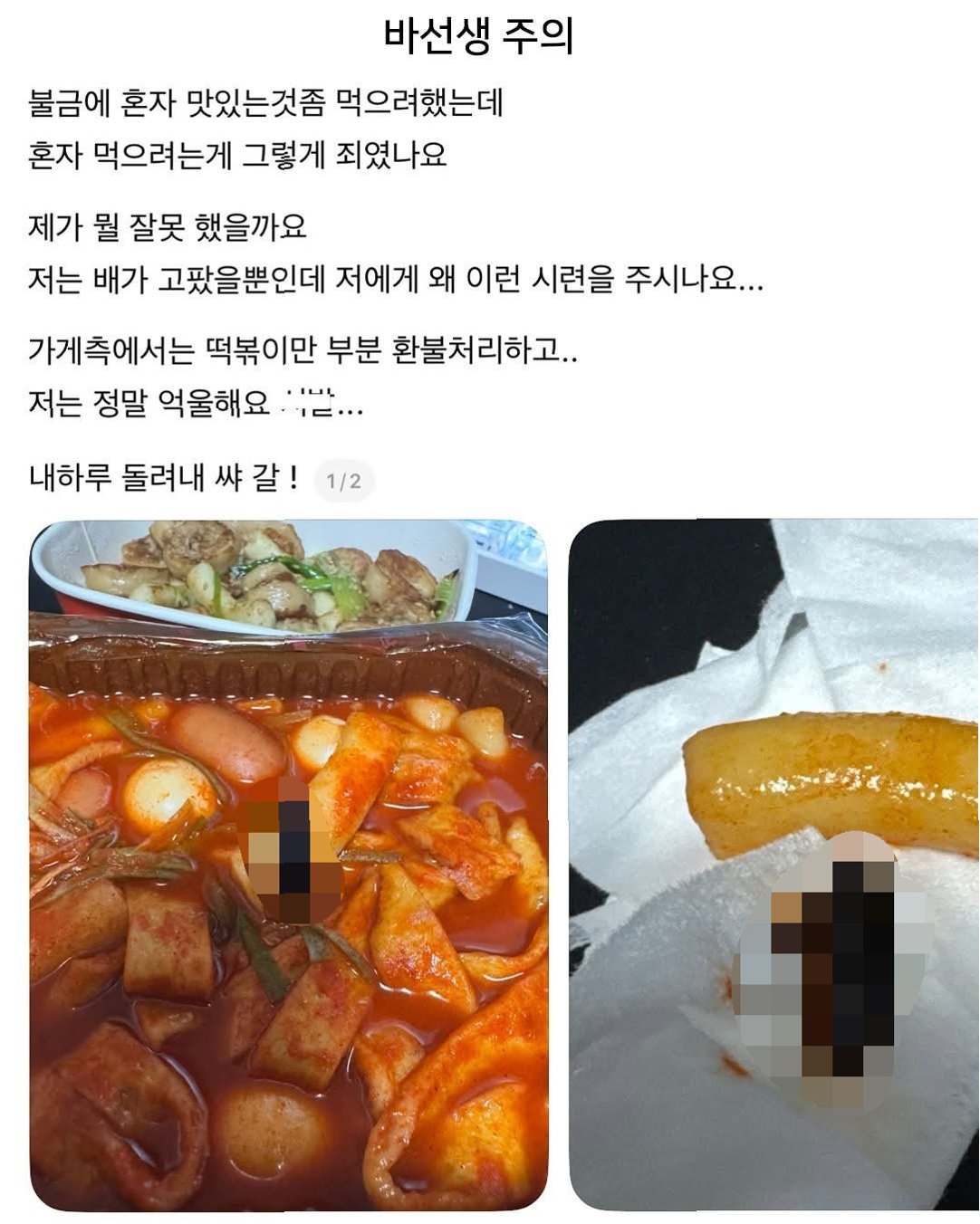 삼첩분식 떡볶이서 바퀴벌레 추정 이물질 발견