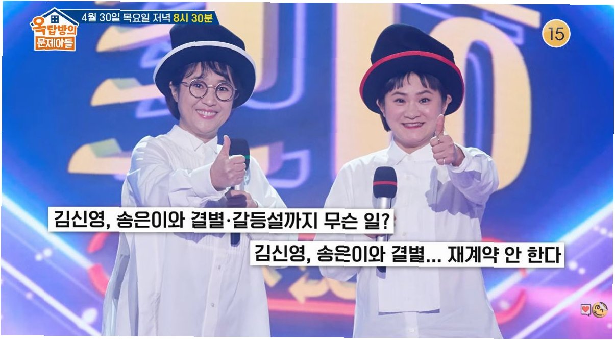 프로젝트 그룹 셀럽파이브로 각별한 우애를 다졌던 송은이와 김신영이 4년 만에 '옥탑방의 문제아들'에서 공식적으로 재회합니다. 과거 김신영이 송은이의 회사와 전속 계약을 종료하며 불화설에 휩싸였던 것에 대해 두 사람은 허심탄회한 심경을 고백할 예정입니다. 김신영은 '주먹다짐을 했다는 소문까지 돌았다'며 당시의 억울함과 오해에 대한 답답함을 토로했습니다.