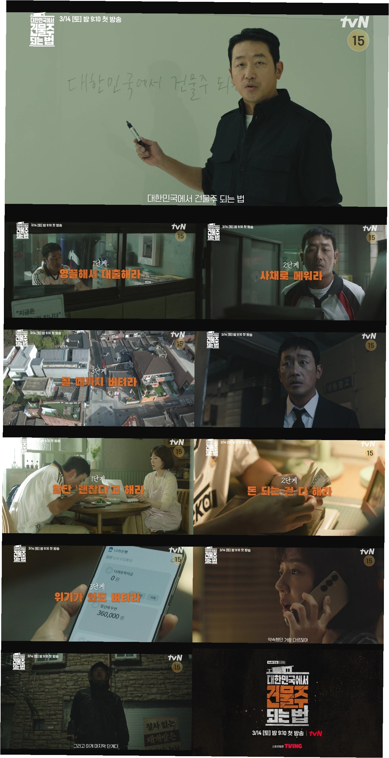 하정우 주연의 드라마 '대한민국에서 건물주 되는 법'은 건물주라는 꿈을 좇지만 현실의 빚더미에 좌절하는 가장의 처절한 사투를 그린 서스펜스 드라마입니다. 19년 만의 복귀작에서 하정우는 극한의 상황에 몰린 인물을 탁월하게 그려내며 시청자들에게 깊은 인상을 남길 것입니다.