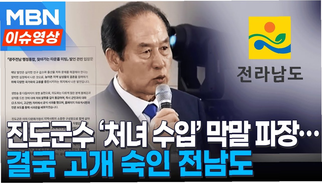김희수 진도군수가 인구 소멸 대응책을 논하며 '스리랑카나 베트남 처녀들을 수입하자'고 발언해 큰 파장을 일으키고 있습니다. 이 발언은 외교 문제로까지 번져, 주한 베트남 대사관은 전남도에 항의 서한을 보냈습니다. 전남도는 이에 대해 사과문을 발송할 예정입니다.
