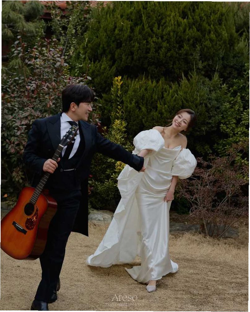 공개된 웨딩 사진 속에는 두 사람이 같은 디자인의 결혼반지를 낀 채 환하게 웃으며 손을 맞잡은 모습이 담겨 있습니다. 신부는 이민우 씨를 뒤에서 다정하게 껴안거나, 악기를 들고 장난기 넘치는 포즈를 취하는 등 예비부부의 자연스럽고 사랑스러운 애정이 묻어나는 장면들이 연출되었습니다. 이러한 모습들은 두 사람의 설렘과 행복감을 고스란히 전달하며 보는 이들에게도 긍정적인 에너지를 선사합니다.