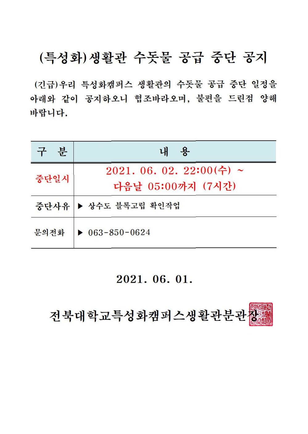 수돗물 재공급, 그리고 맑은 물을 위한 당부