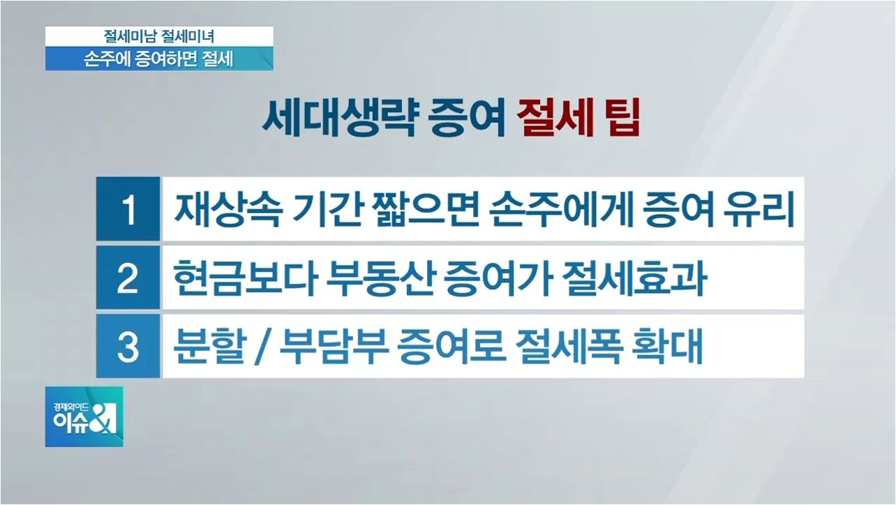 A.조부모가 부모를 거치지 않고 손주에게 직접 재산을 증여하는 방식입니다. 세금 절감 효과가 있지만, 편법적인 수단으로 악용될 수 있다는 우려가 있습니다.