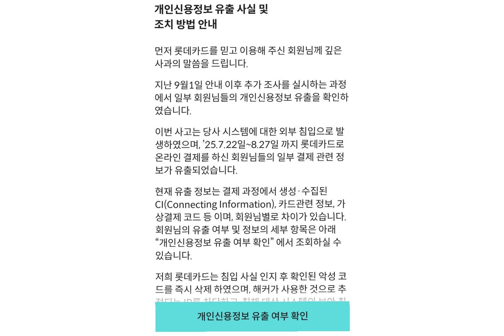 Q.롯데카드 해킹으로 유출된 정보는 무엇인가요?