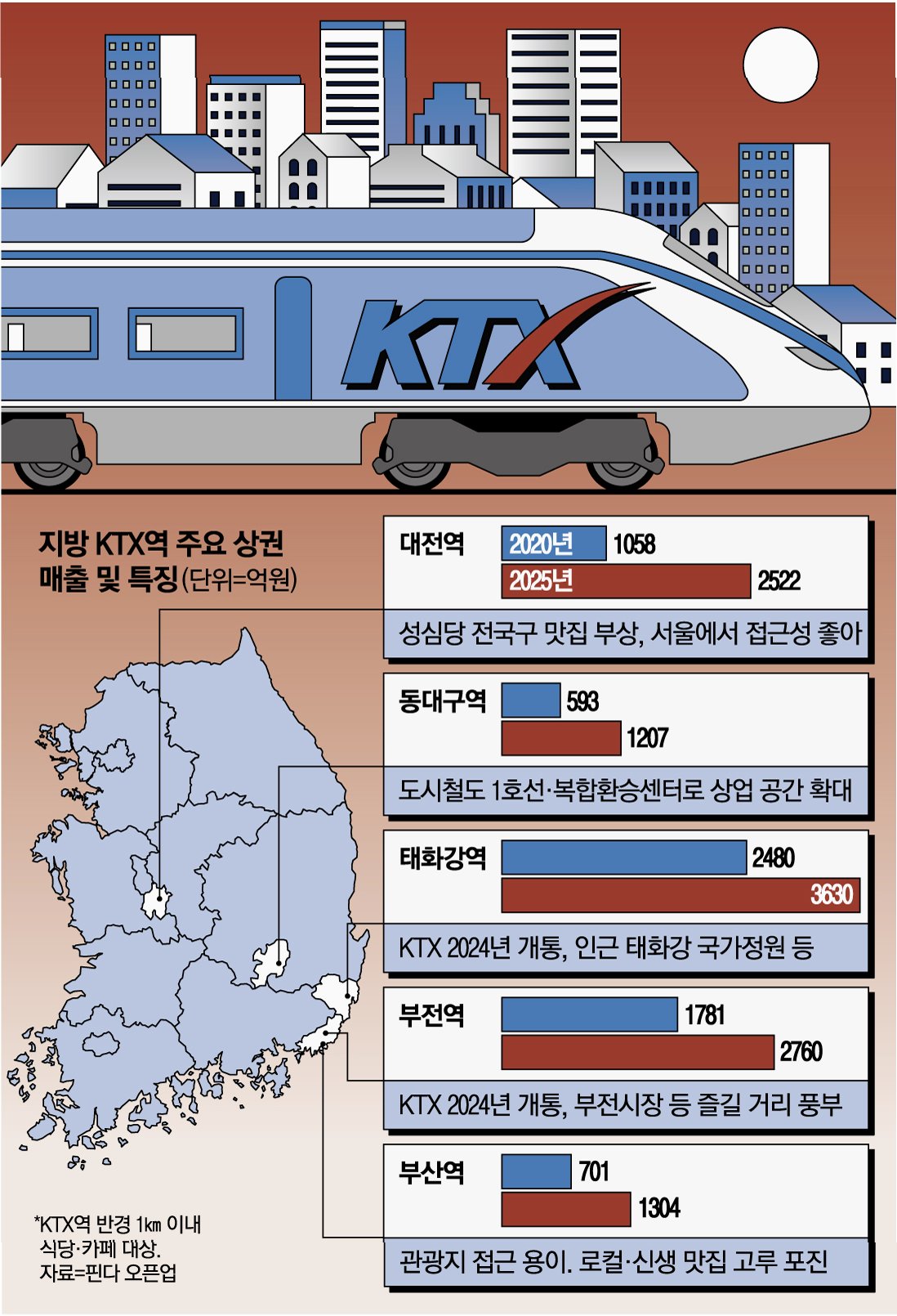 KTX 역세권의 반전: 울산 태화강역 3630억 매출 1위, 성심당 대전역은 3위!